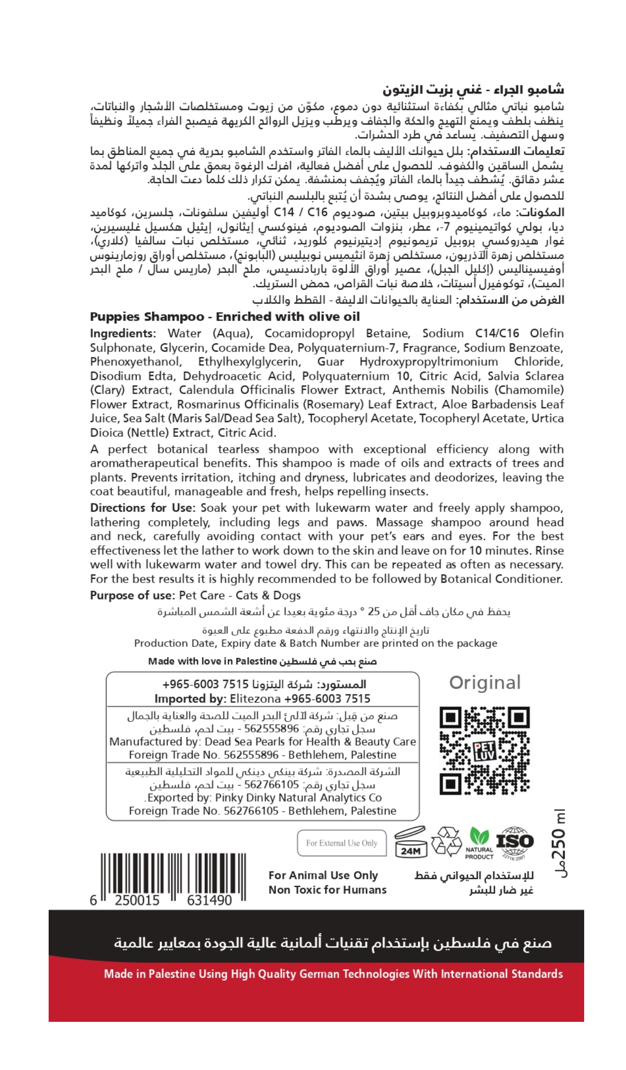 شامبو الجراء غني بزيت الزيتون